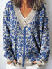 Indian Art Floral Vintage Print Art Knit V-neck Pullover Sweater