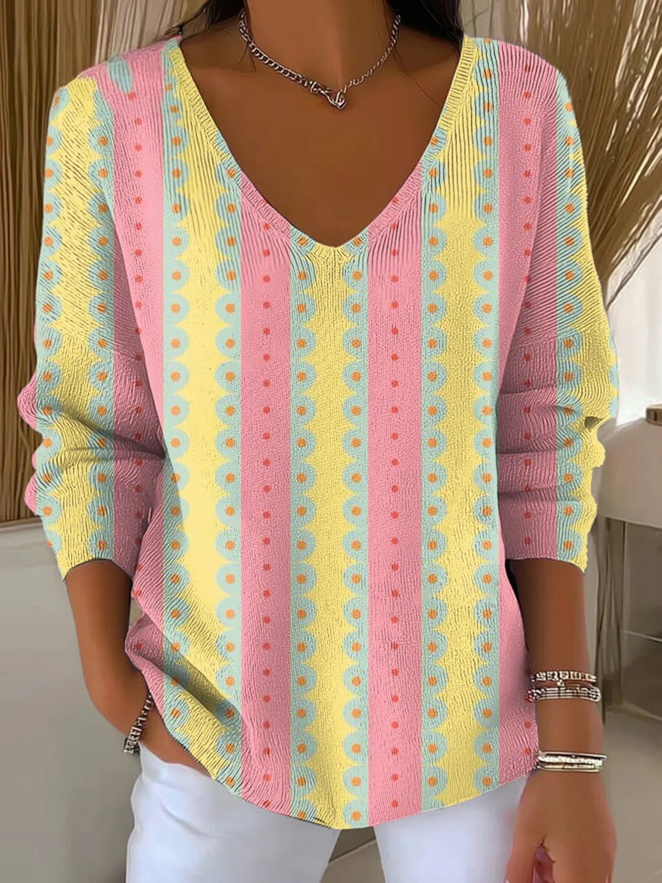 Women's Beautiful Colorful Striped Painting Art Print Casual Pullover Sweater