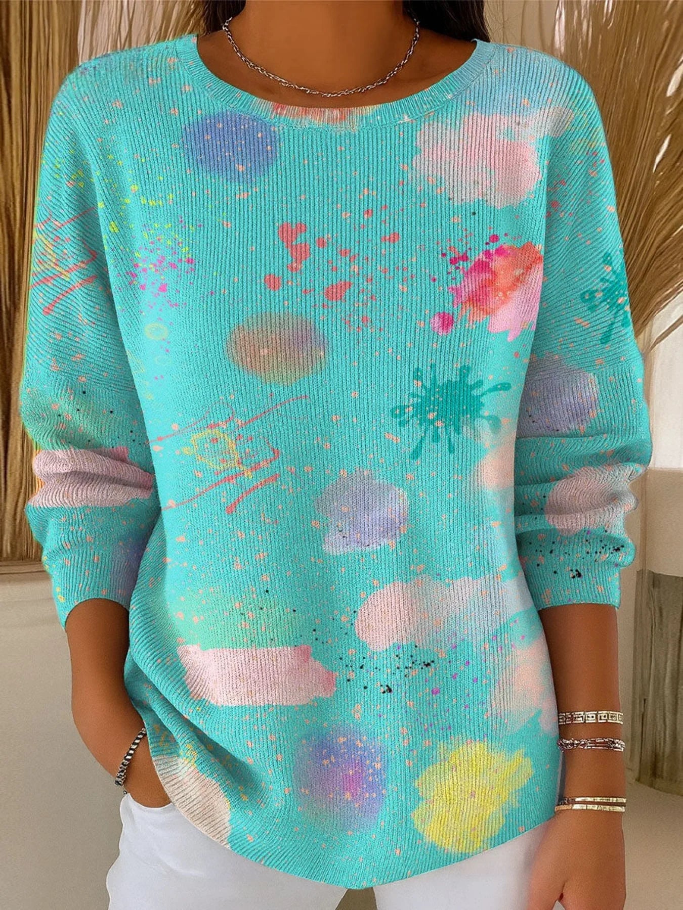 Women's Color Splash Ink Pattern Casual Pullover Sweater