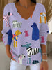 Women's Funny Dogs Art Print Casual Pullover Sweater