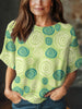 Women's Vintage Abstract Geometric Art Print Casual Crew Neck Short Sleeve Knitted Sweater