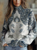 Women's Vintage Art Ethnic Flower Print Knit Turtleneck Pullover Sweater