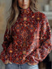 Women's Vintage Ethnic Floral Art Print Knit Turtleneck Pullover Sweater